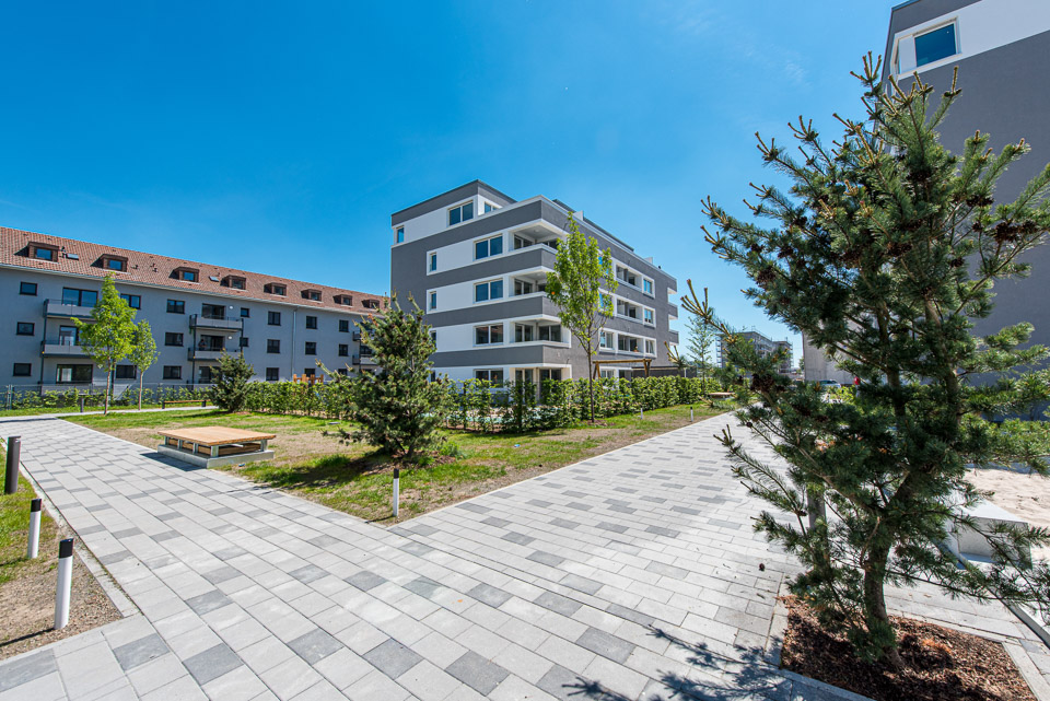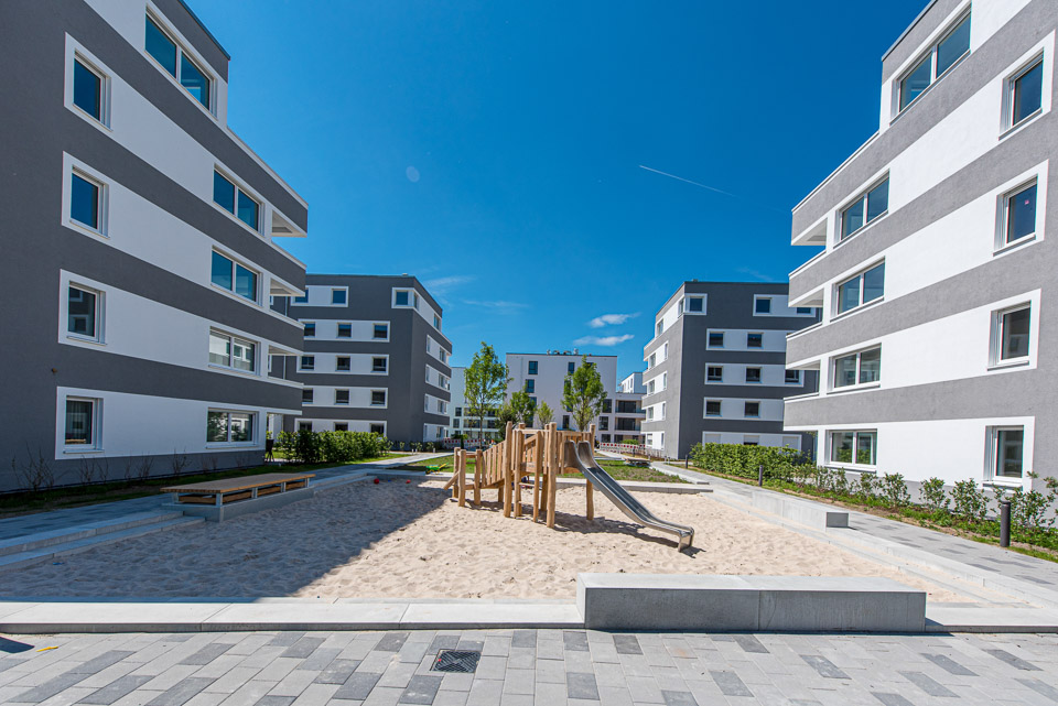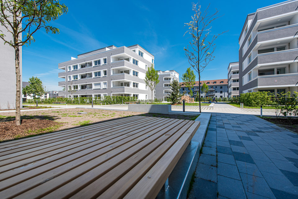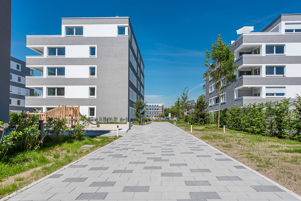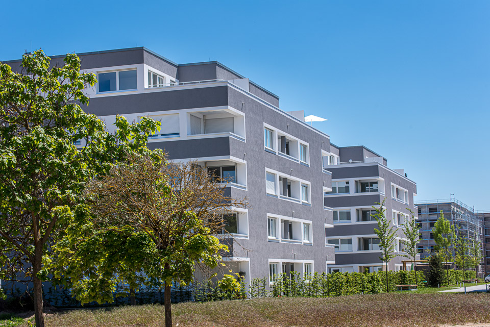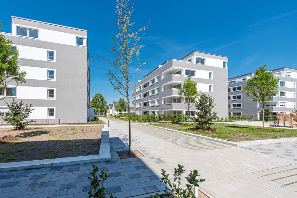 Auf dem Gelände der ehemaligen Benjamin-Franklin-Kaserne baut und verwaltet Industria Wohnen Frankfurt für den Offenen Immobilienfonds "Fokus Wohnen Deutschland" mehrere neue Wohnhäuser. Bei diesem Bauabschnitt wird gerade letzte Hand angelegt, bevor in wenigen Wochen die neuen Mieter einziehen. Zur Unterstützung der Vermietung wurden diese Immobilienfotos benötigt.